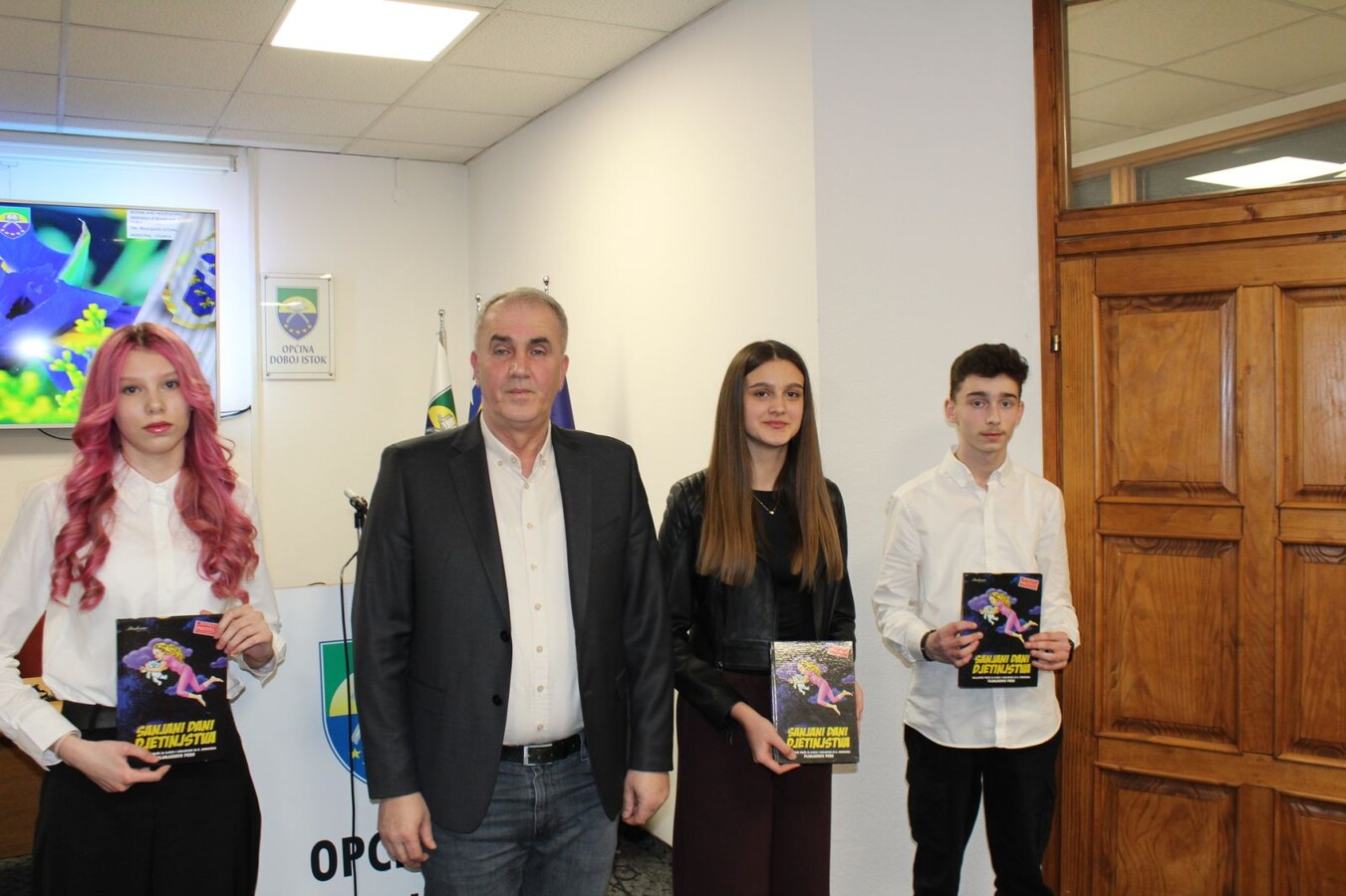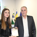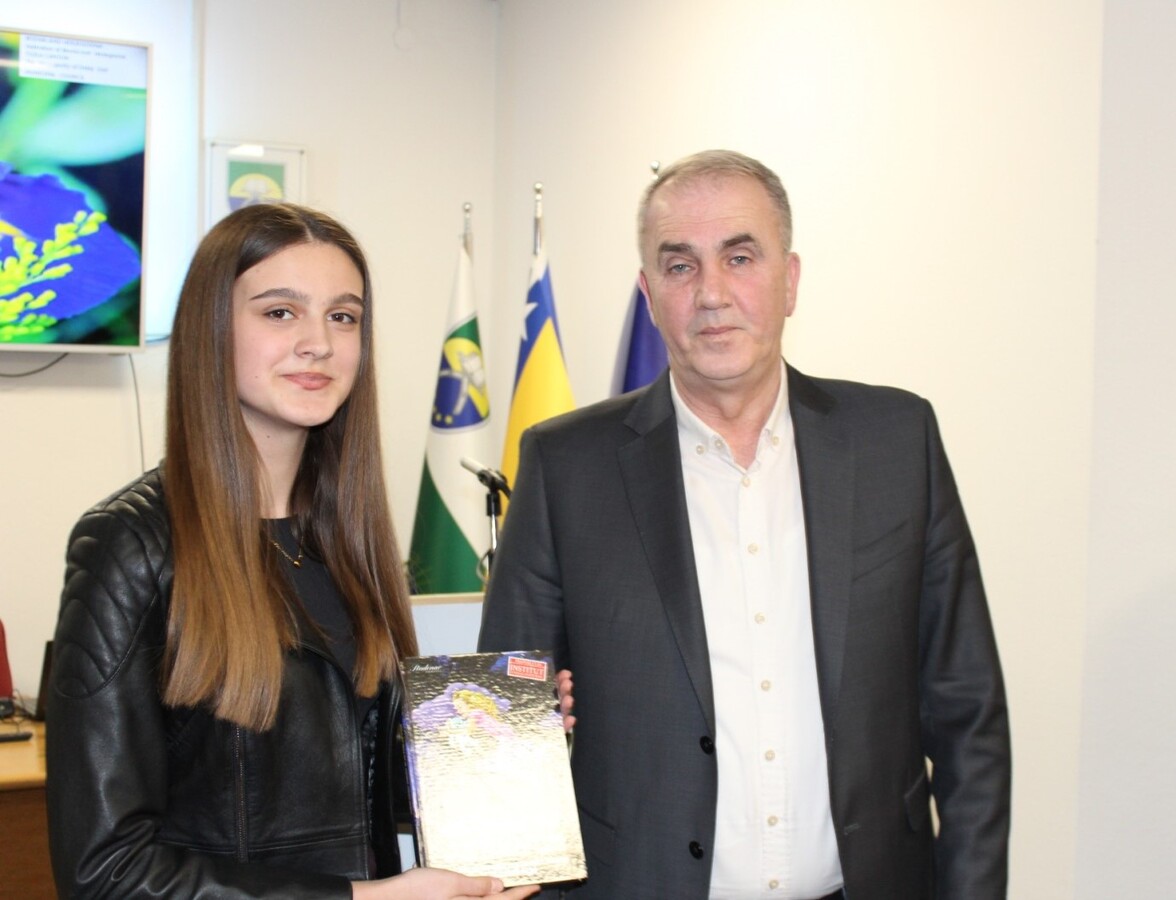 Učenica naše škole Mešić Elmina je na svečanoj sjednici Općinskog vijeća pročitala svoj nagrađeni rad na temu Dana nezavisnosti. Nagradu joj je uručio općinski načelnik Kemal Bratić.