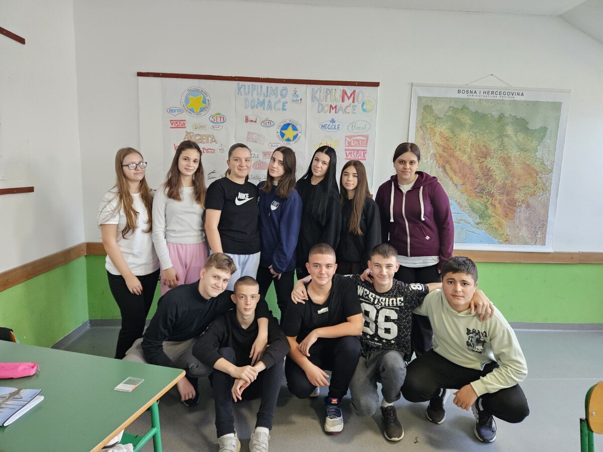 Naša škola je u periodu od 17. do 21. novembra 2025. godine bila dio kampanje "Kupujmo domaće - volimo Bosnu i Hercegovinu", s ciljem jačanja svijesti učenika o značaju podrške domaćoj proizvodnji, očuvanju radnih mjesta i unapređenju ekonomskog razvoja Bosne i Hercegovine. Neke od aktivnosti koje smo realizovali u pomenutom periodu su: izrada plakata sa obilježjima domaćih proizvođača te izložba istih u hodnicima škole, posjeta lokalnim firmama, gledanje video materijala o pomenutoj temi, posjeta lokalnih marketa gdje smo obavili zajedničku kupovinu sa naglaskom na domaće proizvode, izrada kratkog video materijala sa porukom te vođenje dnevnika "Kupovine domaćih proizvoda“.